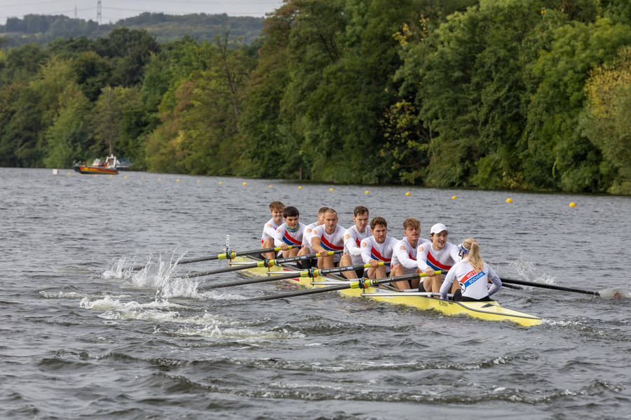 Nur eine Woche später, am 30. August, wartete mit dem Baldeneysee in Essen das „Heimspiel“ der Saison. Von Beginn an war die Stimmung im Team elektrisiert: Jetzt sollte endlich der Durchbruch gelingen. Schon im Zeitfahren setzte der Achter ein Ausrufezeichen: Mit einem klaren Sieg über Leipzig sicherte sich die Crew Platz sieben.