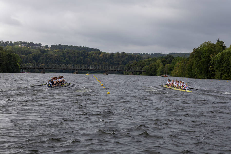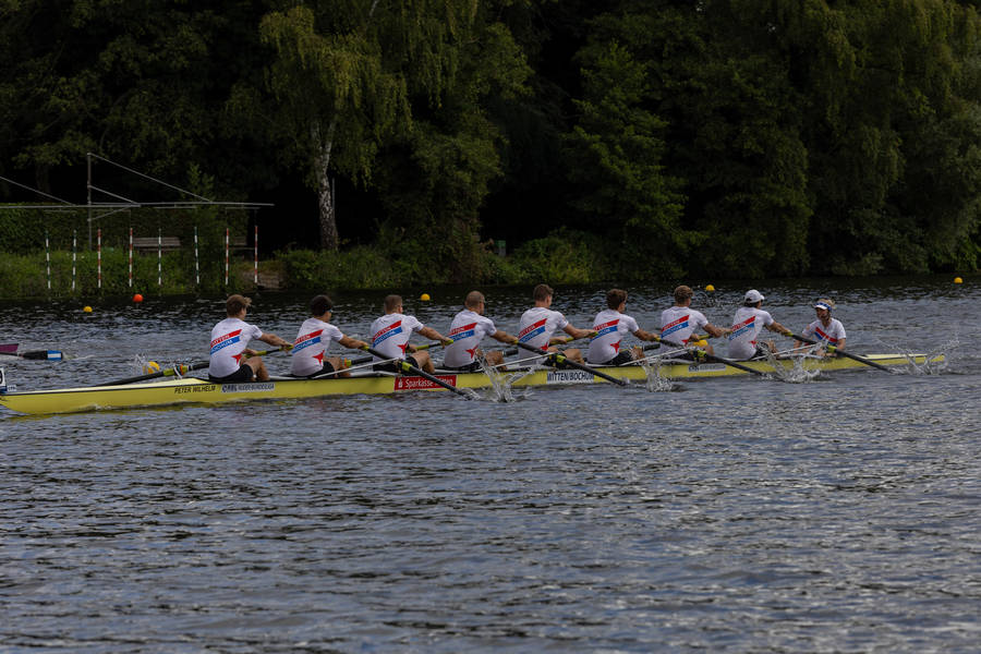 So kam es erneut zum Duell mit Leipzig – diesmal im Finale um Platz sieben. Angetrieben vom lautstarken Publikum am Ufer entwickelte sich ein hochdramatisches Rennen. Schlag für Schlag arbeitete sich der Bochum/Witten-Achter nach vorne und brachte den erkämpften Vorsprung unter tosendem Jubel sicher ins Ziel. Platz sieben bedeutete die bislang beste Saisonleistung.