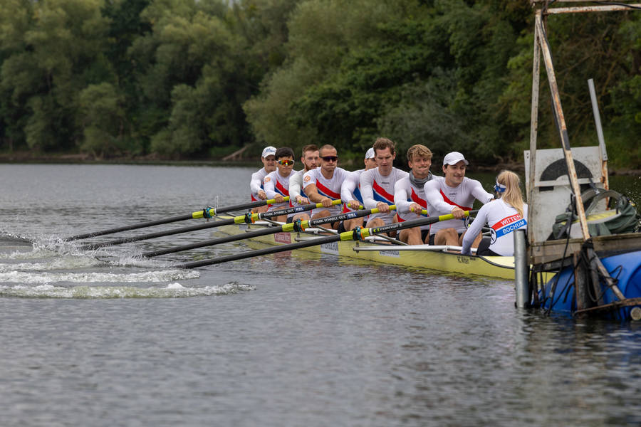 Für den Bochum/Witten-Achter verlief die Saison 2025 bislang vielversprechend: Schon beim Auftakt in Gießen gelang mit Platz 8 der Sprung in die obere Tabellenhälfte, in Mülheim konnte dieser Erfolg wiederholt werden. Mit diesem Rückenwind ging die Mannschaft zuversichtlich in die Renntage drei und vier in Kassel und Essen.