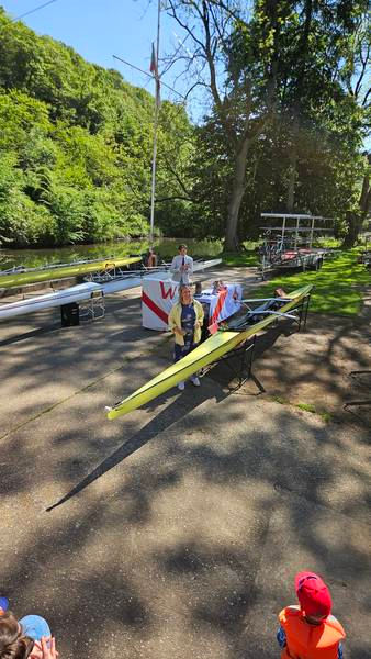 Nach dem Rückblick auf jahrzehntelange Treue richtete sich der Blick nach vorn – auf den sportlichen Erfolg des RCW. Die Junior*innen des Clubs konnten bei der Internationalen Regatta in Gent mit jeweils drei Gold-, Silber- und Bronzemedaillen glänzen. Besonders hervorzuheben war der Überraschungserfolg von Finn Wolter, der sich trotz Trainingspause spontan der Deutschen Kleinbootmeisterschaft stellte und prompt die Silbermedaille holte.