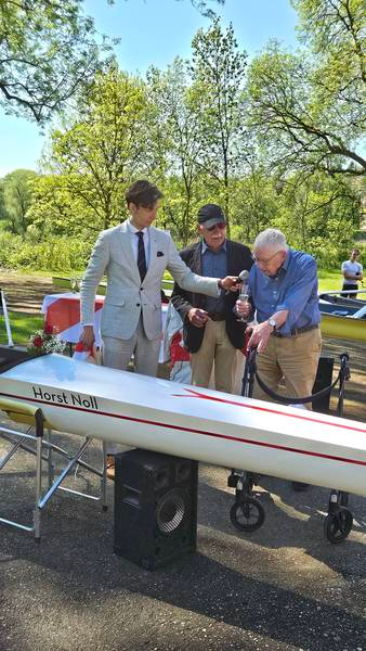 Besonders bewegend war die Taufe des neuen Flippi-Vierers, bei der kein Geringerer als Horst Noll, langjähriges Clubmitglied und ehemaliger Vorsitzender, die Taufpatenschaft übernahm. Bevor er das Boot feierlich auf seinen Namen taufte, hielt er eine mitreißende, zutiefst persönliche Rede.