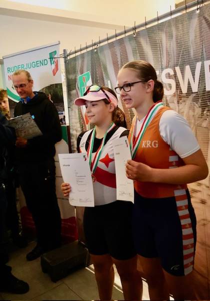 Ein überraschend starker Ausgang ergab sich im Leichtgewichts-Einer der 14-jährigen Jungen: Nils Evers sicherte sich trotz eines durchwachsenen Zusatzwettbewerbs den zweiten Gesamtrang. Nach einem knappen Rückstand auf Mülheim in der Langstrecke, konnte er im entscheidenden Finale den Spieß umdrehen und den Mülheimer Athleten erstmals besiegen – das bedeutete die verdiente Qualifikation für München. Ebenfalls erfreulich: Karl Louis van Rieht, der in seinem ersten Regattajahr antrat, überzeugte mit einem starken vierten Platz auf der Langstrecke, erreichte das A-Finale und schlug dort den bisherigen Dritten. Gesamtrang 3 – ein tolles Ergebnis für den Nachwuchsruderer.