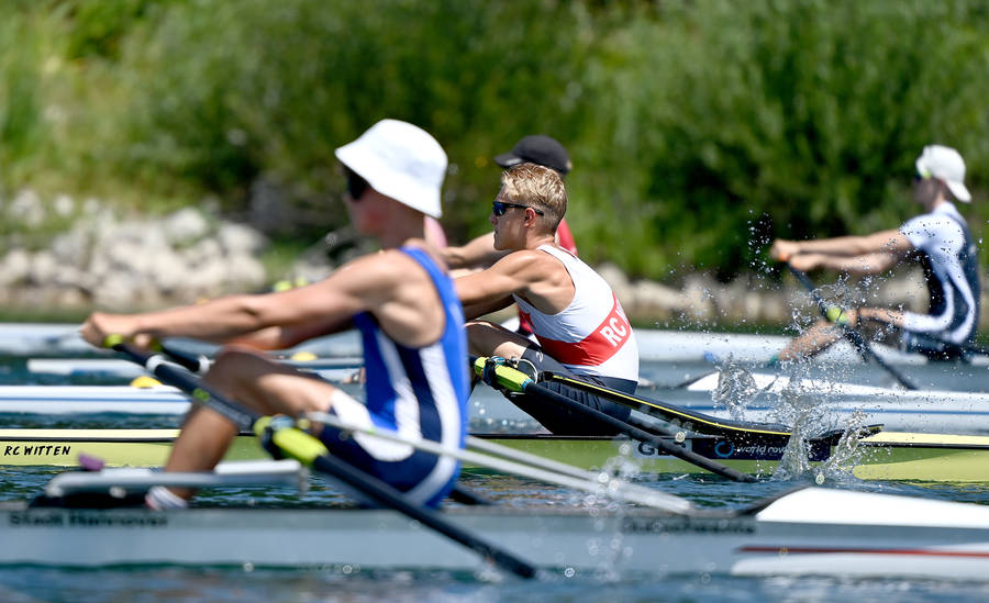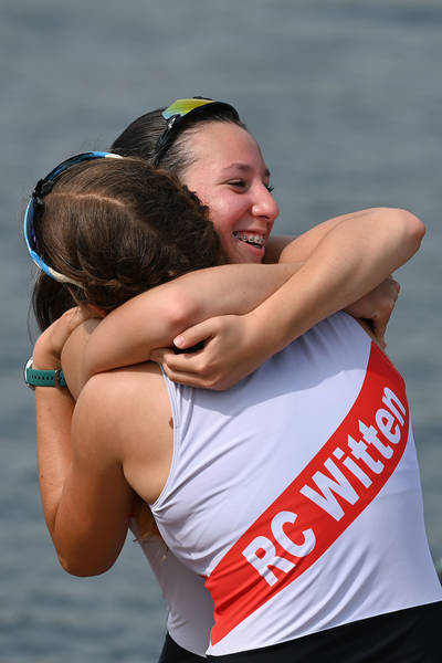 Die Finaltage am Wochenende wurden zur Hitzeschlacht: Am Sonntag kletterte das Thermometer auf bis zu 37 Grad. Umso bemerkenswerter war die physische und mentale Stärke vieler Wittener Athletinnen und Athleten, die teilweise in mehreren Bootsklassen starteten und damit ein enormes Pensum bewältigten. Ausgetragen wurde die Meisterschaft in den Altersklassen B-Junioren (15-16 Jährige), A-Junioren (17-18) und U23 (19-22). Die B-Junioren traten auf der verkürzten 1500 Meter langen Strecke an und die A-Junioren und U23 auf der olympischen 2000 Mester Distanz. Die mitgereisten RCW-Fans und viele weitere Zuschauer entlang der Strecke sorgten für lautstarke Unterstützung – und deckten sich bei den freiwilligen Helferinnen und Helfern des Kölner Regattaverbandes, der eine hervorragende Organisation der Veranstaltung gewährleistete, mit Eis und Getränken ein.