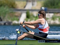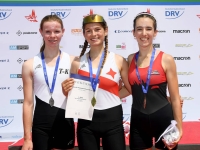 Liana Büttner war bereits im vergangenen Jahr eine der erfolgreichsten Athletinnen der B-Juniorinnen und knüpfte nahtlos an ihre Leistungen an. Im Leichtgewichts-Einer (23-Boote-Feld) dominierte sie vom Vorlauf an das Geschehen. Nach einem kontrollierten Vorlaufsieg und einem souveränen Halbfinale begann sie das Finale etwas zurückhalten und lag zunächst auf dem zweiten Platz. Auf der zweiten Streckenhälfte zündete sie den entscheidenden Zwischenspurt, übernahm die Führung und ließ sich den Sieg auch im Endspurt nicht mehr nehmen - Gold! Im vergangenen Jahr erreichte sie in dieser Bootsklasse noch den Bronzerang.