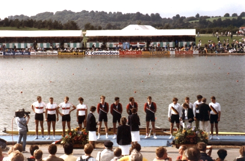 Volker und Guido Grabow mit Jörg Puttlitz und Norbert Kesslau werden DM im "Vierer ohne" und "Vierer mit".