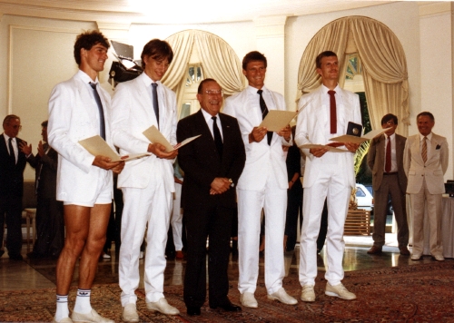 WM860002.jpgVolker und Guido Grabow, Jörg Puttlitz und Norbert Keßlau erhalten das vom Bundespräsidenten verliehene silberne Lorbeerblatt. Überreicht durch Innenminister Zimmermann.    Bericht