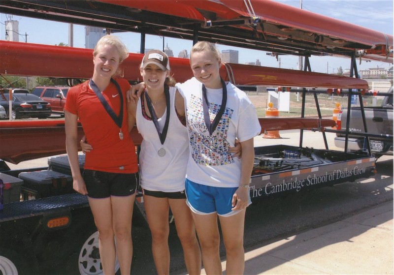 Es fing letzten Herbst an, als unser damaliger Coach Piper (meine Gastschwester) und mich nicht im selben Boot rudern lassen wollte und ansonsten auch andere Ansichten hatte, die uns nicht gefallen haben. So habe ich sogar überlegt mit Rudern aufzuhören! Aber wir hatten an einem Wochenende an einer Art Workshop teilgenommen dort lernten wir Coach Barksdale aus Austin kennen, der eigentlich für die Masters zuständig ist. Er hat uns aber wieder gezeigt wie viel Spaß Rudern macht. So haben wir uns gemeinsam überlegt, dass er uns Workouts aus Austin per E-Mail schicken würde, und wir sie hier in Plano absolvieren würden. So richtig haben wir dann auch im Januar durchgestartet und wir konnten sogar zu Hause Ergo fahren, weil meine Gastfamilie zwei Ergometer zu Hause hat! Mitte Februar war dann der Ergo Cup, sodass wir sehen konnten, ob es klappt auf weite Entfernung mit unserem Coach zu trainieren. Und tatsächlich, wir hatten sogar sehr gut abgeschnitten. Wir haben es also geschafft uns auf dem Ergo zu beweisen. Nun war nur noch die Technik auf dem Wasser ein Problem. In Amerika muss man mit einem Club auf den wichtigen Regatten mitfahren, sodass wir dachten, dass wir unter DRC (Dallas Rowing Club), mit denen wir letzten Herbst gerudert sind, rudern würden. Wegen uns wurden aber neue Regeln an diesem Ruderclub entwickelt, sodass wir nicht mehr alleine auf dem Wasser trainieren konnten und mit unserem alten Coach hätten trainieren müssen. Sein Verhalten war nun aber wirklich nicht ertragbar und vor allen Dingen was er zuvor gesagt hatte war unakzeptable, sodass wir unter Umständen mit ihm rudern wollten. Damit kam Coach Lisa von der Cambridge Crew ins Spiel. Das einzige Problem: Training um 5:15 unter der Woche, aber MORGENS!! Nun hatten wir ausgemacht, dass wir nur zweimal unter Woche kommen müssten und ansonsten zu Hause trainieren würden und dann am Wochenende erscheinen würden. Das frühe Aufstehen war nicht so schlimm wie anfangs gedacht. Trotzdem mussten wir ein paar Male aufpassen nicht im Unterricht einzuschlafen. Unsere erste Regatta war Anfang März. Wegen mangelnden Trainings auf dem Wasser schnitten wir aber nicht so gut ab. Die nächste Regatta war auch eher frustrierend, auch wenn wir im Vierer eine Bronzemedaille bekommen haben. Ende April war State und wir dachten, dass wir eigentlich gute Chancen gehabt hätten. Doch auch dieses Mal konnten wir keine Medaille bekommen. Das folgende Wochenende war dann Regionals, insgesamt würden 10 Staaten gegeneinander antreten um sich für Nationals zu qualifizieren. Die besten zwei Boote in jeder Kategorie dürften im Juni in Oak Ridge, TN antreten. Unser Fokus lag eigentlich auf unserem Riemenzweier, weil wir dachten, dass wir nicht allzu viele Konkurrenten haben würden. Coach Lisa hatte uns aber leider nicht im 2- trainieren lassen, weil das nicht fair gegenüber dem Team sei. So war es auch leider kein gutes Rennen. Unsere letzte Chance war unser Doppelzweier. Die vorigen Regatten waren alle nur 1000m, doch Regionals war 2000m. Wir wussten, dass wir in einem längeren Rennen besser abschneiden könnten, weil wir im Herbst auf den Langstrecken recht gut abgeschnitten hatten. Vor dem Vorlauf war ich extrem aufgeregt, weil ich noch nie