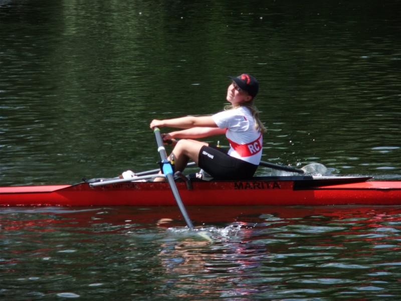 Auch nicht so richtig auf seiner Rechnung hatte von Diecken seine zweite Einer-Fahrerin Pia Vittinghoff, die über sich hinauswuchs ud sich im 1000-Meter-Finale nur dem Boot aus Siegburg geschlagen geben musste und somit als Vize-NRW-Meisterin zu den Deutschen Meisterschaften fahren darf.