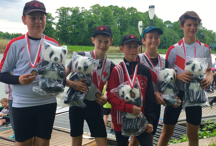 Eine sehr respektable Vorstellung zeigten die RCW-Jungen (2005). Im Doppelzweier starteten Oskar Badur und Max Schürmann in der offenen Klasse sowie Lino Theiß zusammen mit Milan Rode bei den Leichtgewichten. Gegen die ältere Konkurrenz konnten sie zwar nicht gewinnen, lieferten aber technisch sehr gute Rennen ab. Einen Sieg sicherten sie sich dann gemeinsam im Doppelvierer, im so genannten Panda-Rennen, zusammen mit Steuermann Jaques Gerards. Das RCW-Team kam mit einem Vorsprung von rund 15 Sekunden auf das Boot vom TVK Essen ins Ziel.