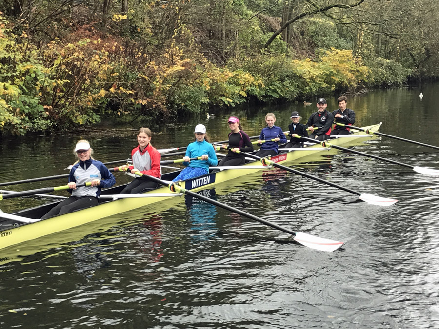 Nachdem unser Juniorentrainer Goofy mal geäußert hatte, dass er gerne mit den Mädchen der Jahrgänge 2003 und jünger in den nächsten Jahren mal einen Juniorinnenachter fahren möchte, haben wir das einfach jetzt schon mal ausprobiert mit den Ruderinnen, die bereits aus den Herbstferien zurück waren.