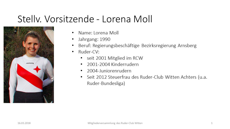 Als Nachfolgerin wurde Lorena Moll (bei eigener Enthaltung) einstimmig gewählt.