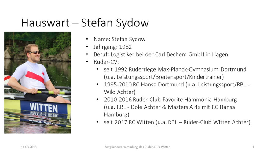 An seiner Stelle wählte die Versammlung Stefan Sydow (bei eigener Enthaltung) einstimmig zum neuen RCW-Hauswart. Der jetzt amtierende Vorstand.