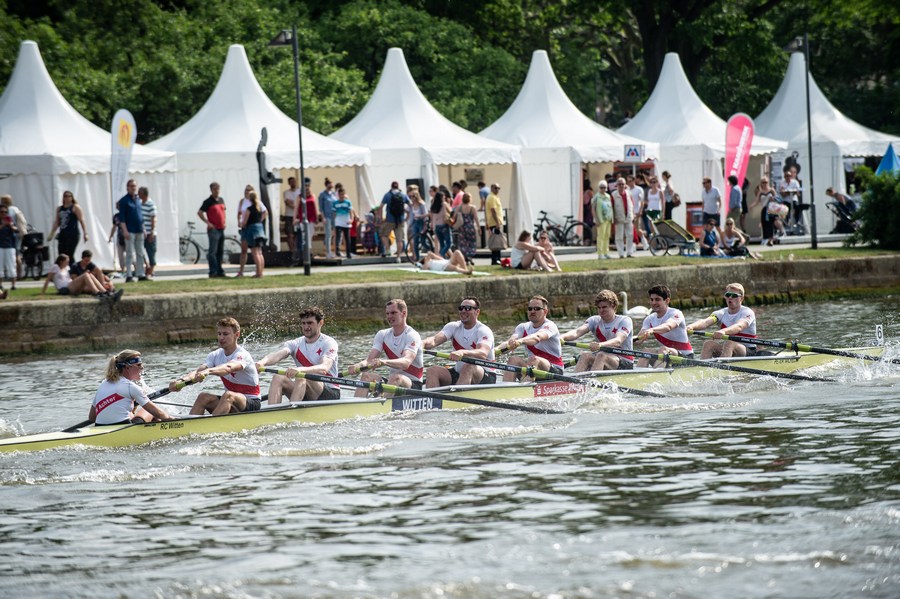 Quelle RBLBei Saisonauftakt am 12. Mai in Frankfurt, hat der "Ruder-Club Witten Achter" im neuen Umfeld der 1. Liga eine hervorragende Vorstellung gezeigt.