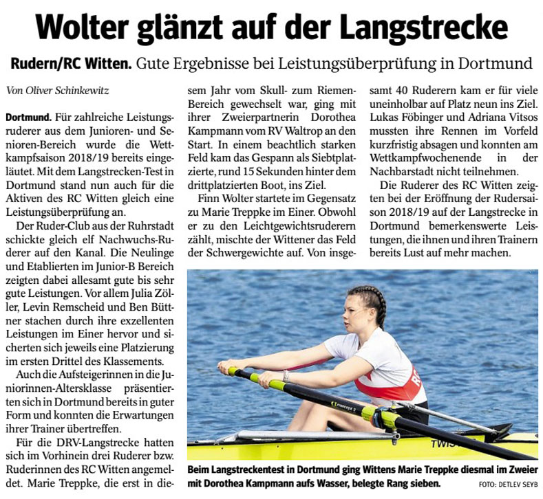 Am 1. Dezember wurde auf dem Dortmund-Ems-Kanal die Dortmunder Langstrecke 2018 und parallel die DRV-Kaderprüfung durchgeführt.