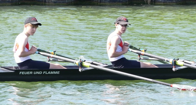 Lea-Sophie und Amelie Lehde, die seit Jahren im Doppelzweier den Ton mit angeben, machten es Christian und Max nach und ruderten ebenfalls zwei Siege ein. Der dritte erfolgreiche Zweier, besetzt mit Jasper und Johann Maaßen, konnte mit mehreren Siegen ihre Aussichten auf die Landesmeisterschaften verbessern.