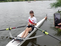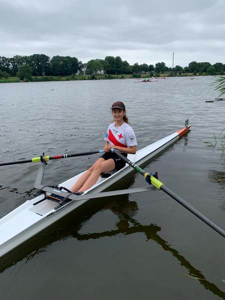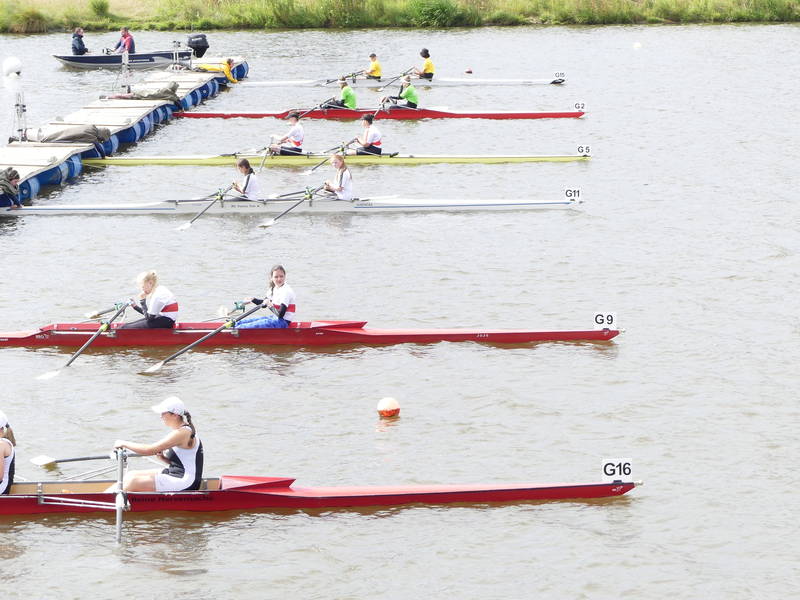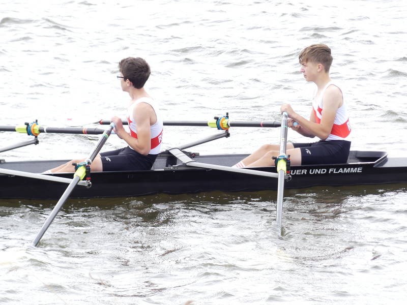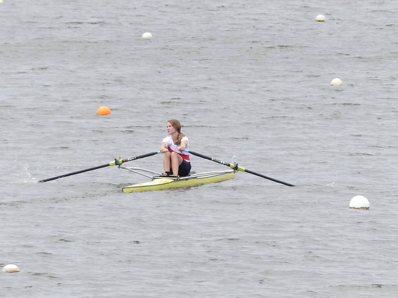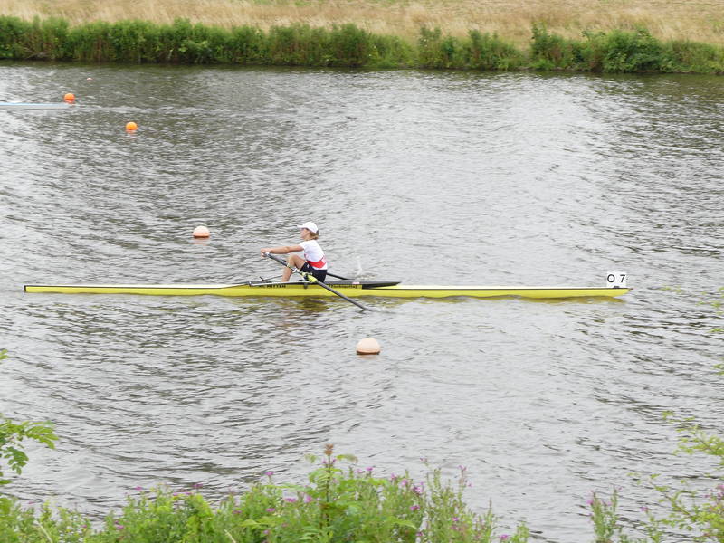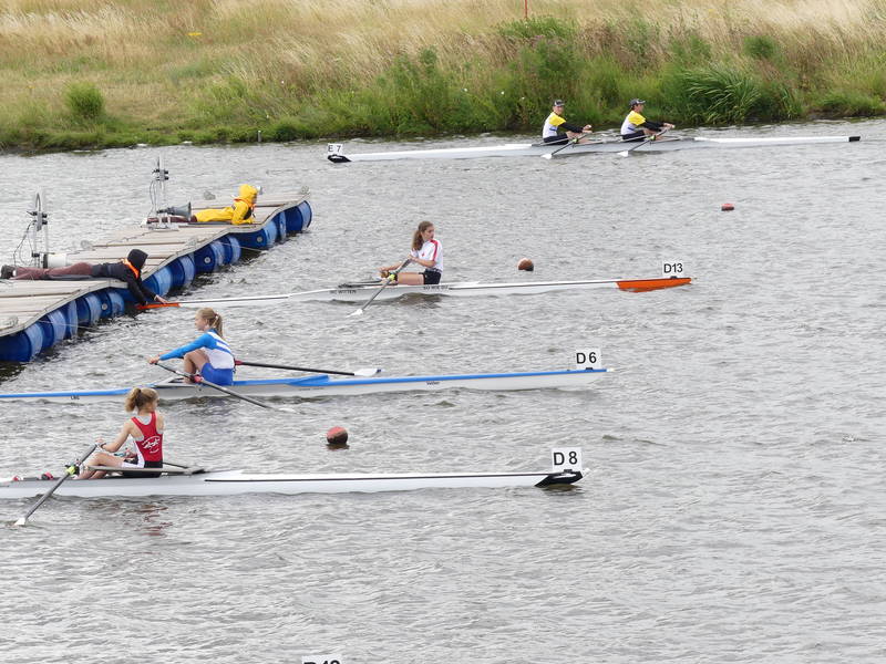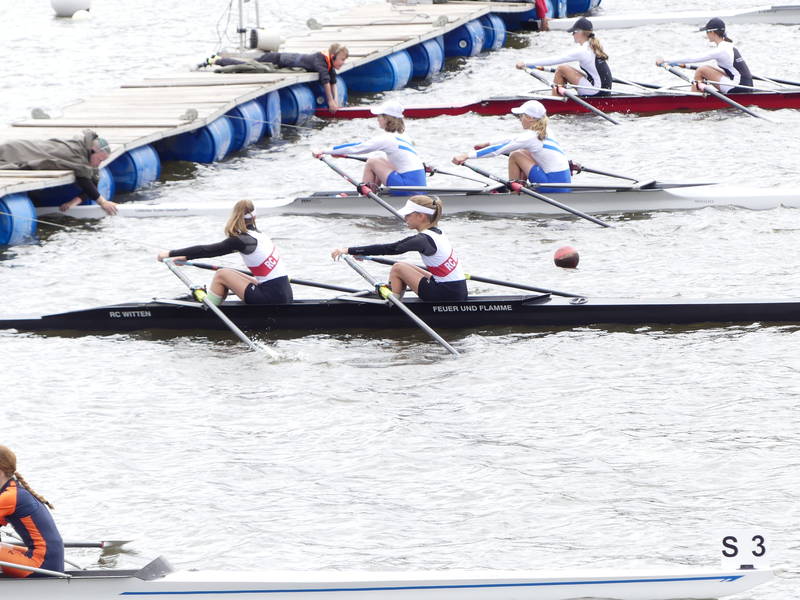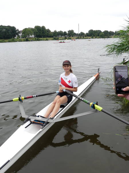 Mara Kapper     Ebenfalls durch die Bedingungen ausgebremst wurde Mara Klapper im Leichtgewichtseiner der Mädchen des Jahrgangs 2008. Ihr Ziel war es im 18 Boote Feld das B-Finale solide zu erreichen und dort möglichst weit nach vorne zu fahren. Dabei übertraf sie dieses Ziel zunächst, indem sie über die Langstrecke ein sehr gutes Rennen fuhr und sich mit Platz 6 unerwartet einen Platz für das A-Finale sichern konnte. Dabei war sie sogar vor ihrer NRW Konkurrentin aus Herdecke die auf dem Landeswettbewerb noch vor ihr war. Im A-Finale versuchte sie dann alles auf eine Karte zu setzen und fuhr das Rennen von vorne, sodass sie bei 500 m auf Platz 3 lag. Dann ging es ihr unglücklicherweise wie vielen Anderen jungen Ruderern an diesem Wochenende. Ihr Skull (Ruder) verfing sich in einer sehr hohen Welle, wodurch Mara kenterte. Jedoch zeigte sie auch in dieser Situation ehrenhaften Kampfgeist, indem sie wieder in ihren Einer stieg noch bevor das DLRG Rettungsboot sie erreichte und das Rennen auf Rang 6 beendete. Daher ist Trainer von Diecken auch voll zufrieden mit ihrer Leistung und weist auf die wichtige Rennerfahrungen hin, die Mara an diesem Wochenende gesammelt hat.