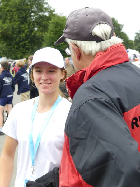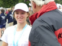 Liana Büttner BWBesonders mit den rauen Bedingungen in Bremen zu kämpfen hatte Liana Büttner im Leichtgewichtseiner der Mädchen des Jahrgangs 2009. Nach ihren grandiosen Vorleistungen auf dem Landeswettbewerb waren ihre Erwartungen zurecht hoch gesteckt. Gold über Lang- und Kurzstrecke anzuvisieren war das von ihr und Trainer Uwe von Diecken gesteckte Ziel. In ihrem 14 Boote Feld erreichte sie bei der Langstrecke den 3. Platz und qualifizierte sich damit für das 1000 m A-Finale. Allerdings hatte sie in Ihrem Langstreckenrennen, wo auf Zeit hintereinander gestartet wird, etwas Pech, da sie zwei deutlich langsamere Boote vor sich hatte. So kam es, dass sie beide Boote gleichzeitig bei der Wendemarke nach 1500m eingeholt hatte und diese sie bei der Wende blockierten, sodass sie wichtige Sekunden verlor. Im A-Finale über 1000 m musste sie bei dem starken Gegenwind zwei Boote ziehen lassen und sicherte sich somit ebenfalls Platz drei. Trainer Uwe von Diecken zieht als Fazit, dass bei ruhigeren Bedingungen sicherlich mehr drin gewesen wäre aber gibt auch zu bedenken, dass Liana durch die Rennen wichtige Erfahrung bei schwierigen Bedingungen für die nächsten Jahre sammeln konnte.