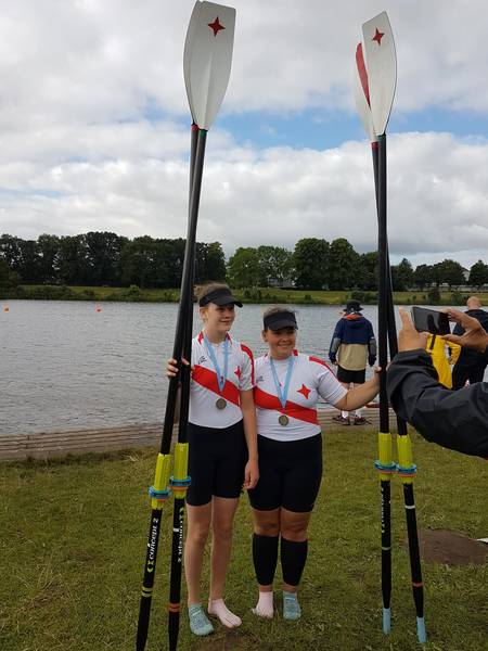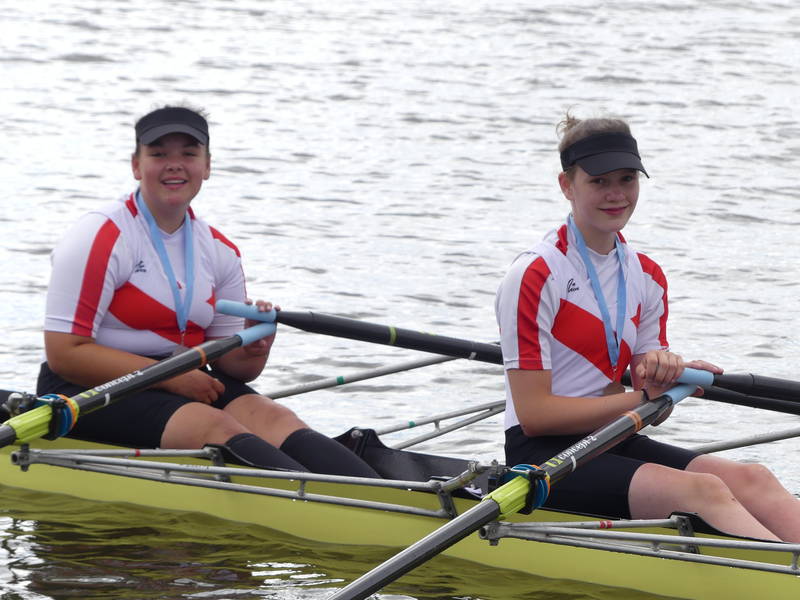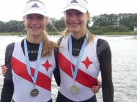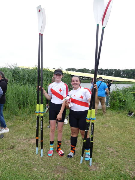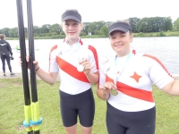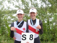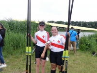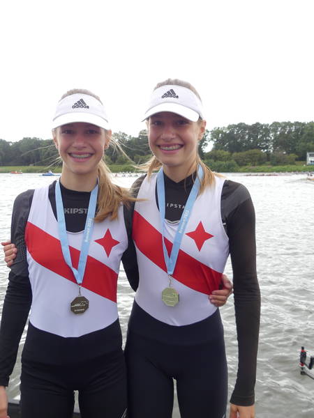 links Julie Spring und rechts Amelie SandmannDer nachnominierte Mädchen Doppelzweier 2009 mit Amelie Sandmann und Julie Spring erreichte ebenfalls sein Ziel. Die Beiden erreichten in einem 15 Boote Feld mit Platz 7 auf der Langstrecke das B-Finale und konnten sich dort über den 2. Platz freuen.