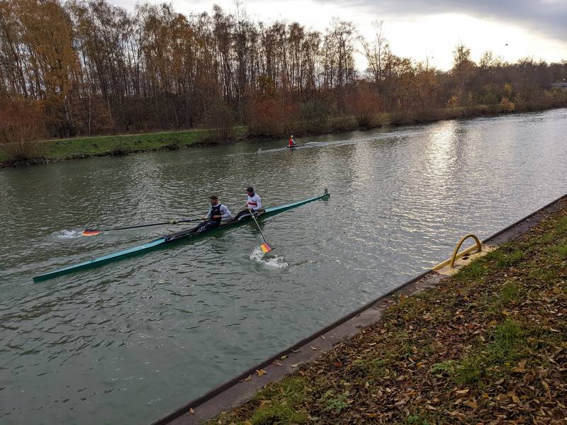 Ebenfalls bei der DRV-Langstrecke vertreten waren die beiden Männer aus dem Elitebereich Lukas Föbinger und Finn Wolter. Lukas, der mit Zweierpartner Friedrich Dunkel die Leistungsüberprüfung bestritt, sowie Finn mussten am Tag zuvor bei dem Ergometer Test ihre physische Leistungsfähigkeit unter Beweis stellen. Obwohl Finn und Lukas bei der Ergometer-Leistungsüberprüfung ihre selbstgesteckten Ziele knapp verfehlten, blieben die beiden fokussiert und konzentrierten sich auf ihre Leitungen in den Ruderbooten am Folgetag.