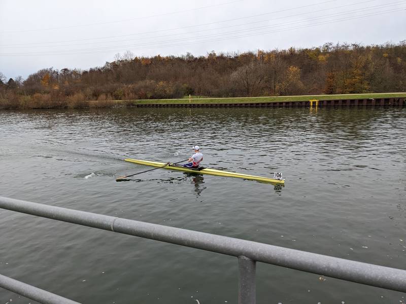Finn, der ein durchwachsenes Ergebnis auf dem Ruderergometer vorweisen konnte, setzte bei der Langstrecke alles auf seine Fähigkeiten im Ruder-Einer. Mit dem Startsignal gab Finn Vollgas und sortierte sich bereits bei der ersten Zwischenzeit ganz weit vorne, auf Platz vier, ein. Er steigerte sich stetig und setzte sich nach Kilometer fünf an die Spitze des Feldes an Platz eins. Auf dem letzten Kilometer legte er noch einmal die sprichwörtlichen Karten auf den Tisch und hielt seinen Vorsprung bis ins Ziel. Knapp vier bzw. vierzehn Sekunden trennten ihn von seinen Verfolgern Leerkamp (Platz zwei) und Gaus (Platz drei), die in der vergangenen Saison noch die Benchmark setzten.