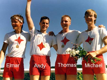 Sie erinnerten sich, dass es nun 20 Jahre her ist, dass sie auf dem Baldeneysee in Essen im Doppelvierer Deutsche Jugendmeister geworden sind. Die damals von Georg Breucker trainierte Mannschaft stellte im Endlauf das einzige Vereinsboot. Alle Gegner fuhren in Renngemeinschaften.