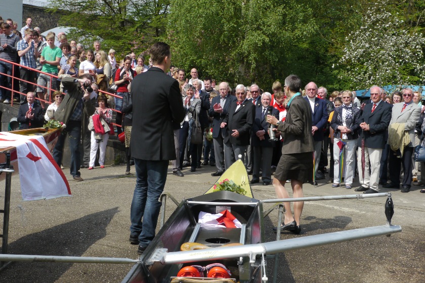 Den Abschluss des Anruderns bildete die Taufe zwei neuer Boote, die in den Dienst des RCW gestellt wurden. Während Barbara Luka einen Rennzweier ohne Steuermann auf den Namen Twister taufen konnte, wünschte Dieter Borgmann einem neuen Zweier mit Steuermann für das Wanderrudern unter dem Namen Flotter Dreier allzeit eine gute Fahrt. Beide Boote wurden anschließend zu Wasser gelassen und führten die RCW-Flotte beim sportlichen Teil des An-Ruderns die Ruhr hinauf.
