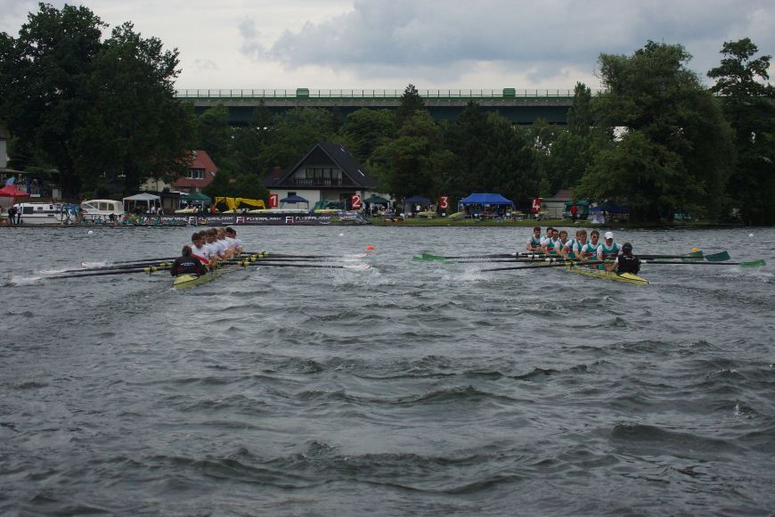Im Zeitrennen über die 350m Strecke auf dem Kalksee belegte der RCW-Achter schon Platz zehn, jedoch kamen mit ihm sechs Boote in einem Abstand von nur einer Sekunde über Ziellinie.