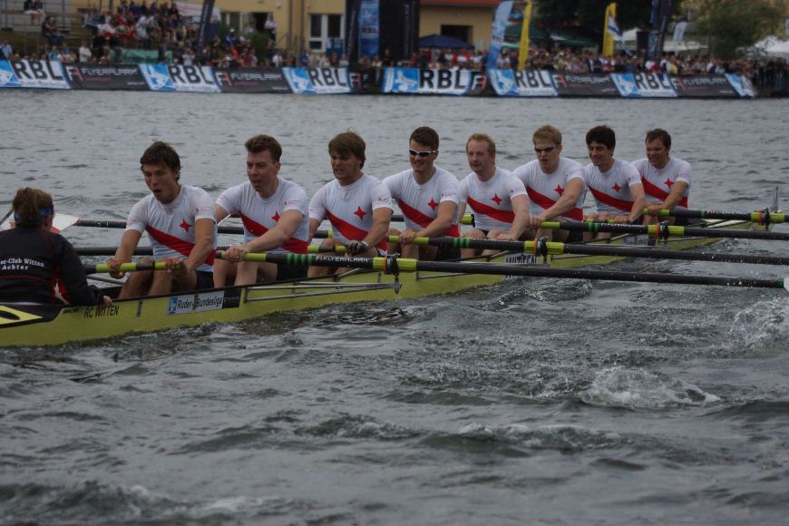 Nachdem sich dies alle zu Herzen genommen hatten, gingen Marcel van Delden, Maik Swienty, Peter Zeller, Sven Schnabel, Andy Herrmann, Malte Huben, Christoph Schröder und Thorsten Fingerle an den Start fürs Achtelfinale. Hierbei trafen die Wittener auf die im Zeitlauf dritt und fünft platzierten Boote, beide aus Dresden. Die Wittener kamen gut vom Start weg und zeigten sich auch auf den Schlägen danach stark, sodass sie zehn Schläge vor dem Ziel eine Spitze vor dem „Protected Gold Achter“ lagen und an das Boot der TU Dresden heran flogen. Doch aufgrund einer starken Windböe von der Seite fuhr der RCW-Achter nicht dran vorbei sondern auf das andere Boot zu, wodurch die Wittener gezwungen waren laufen zu lassen und als letzte über die Ziellinie kamen.