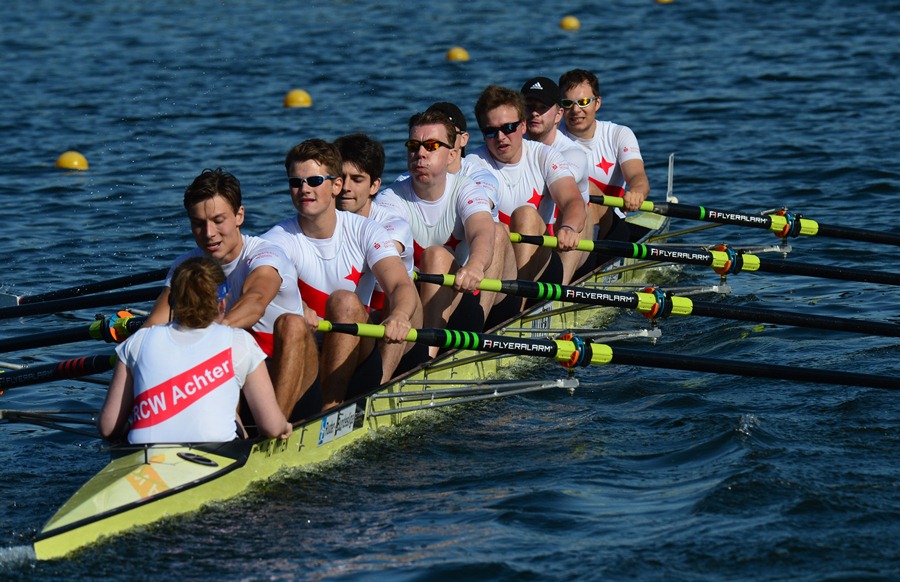 Der Renntag begann wie üblich mit einem Zeitfahrrennen, nach dessen Ergebnis später die Achtelfinals gesetzt wurden. Hier ging die Startaufstellung mit Thorsten Fingerle, Sören Kunde, Malte Huben, Andy Herrmann, Maik Swienty, Christoph Schroeder, Sven Schnabel und Marcel van Delden auf die 350 Meter lange Strecke. „Die Jungs sind gut und sauber gerudert, aber haben zu wenig Explosivität und Aggressivität gezeigt", analysierte Trainer Henning Sandmann das Rennen, indem der RCW-Achter nur die insgesamt neunt schnellste Zeit hinlegte.