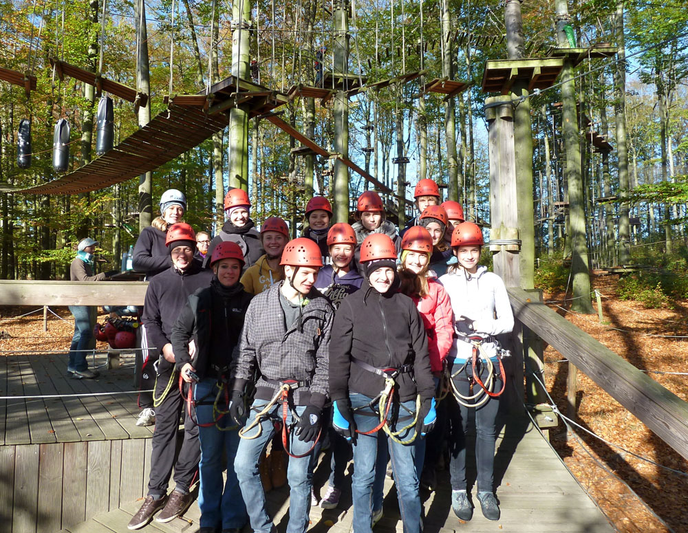 Zum Abschluss gab es aber noch ein besonderes Erlebnis. Es stand ein Ausflug in den Kletterwald in Wetter an. Bei bestem Wetter und mit Blick auf den Harkortsee hingen sie statt in den Riemen rund drei Stunden in Seilen.