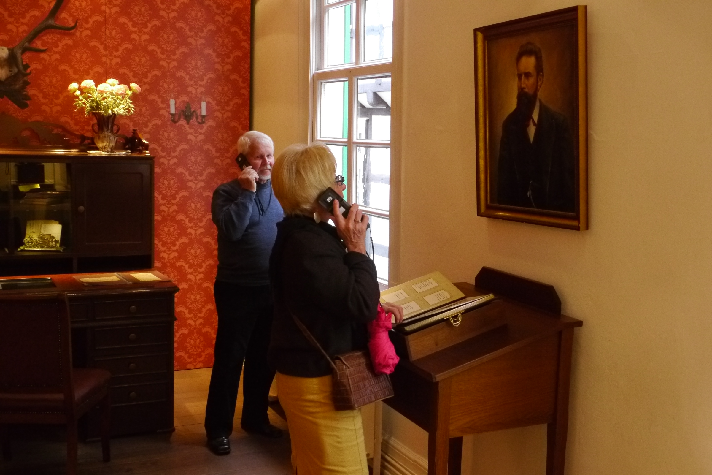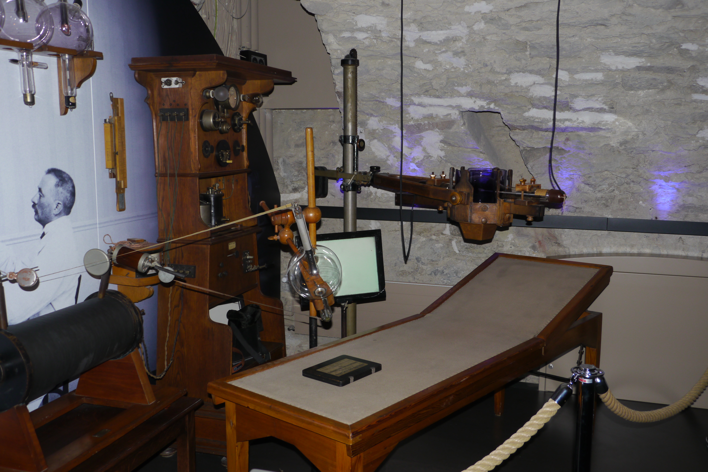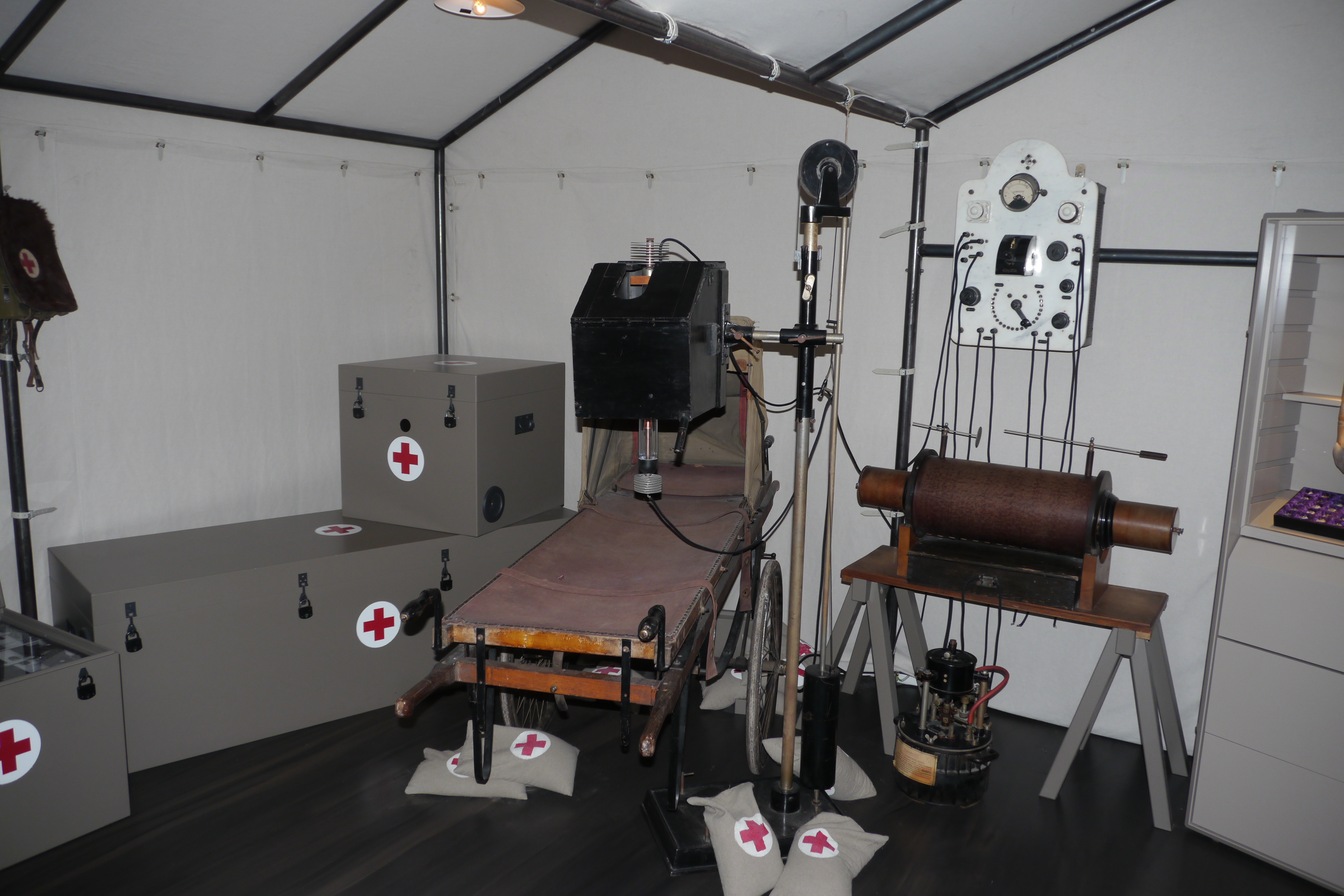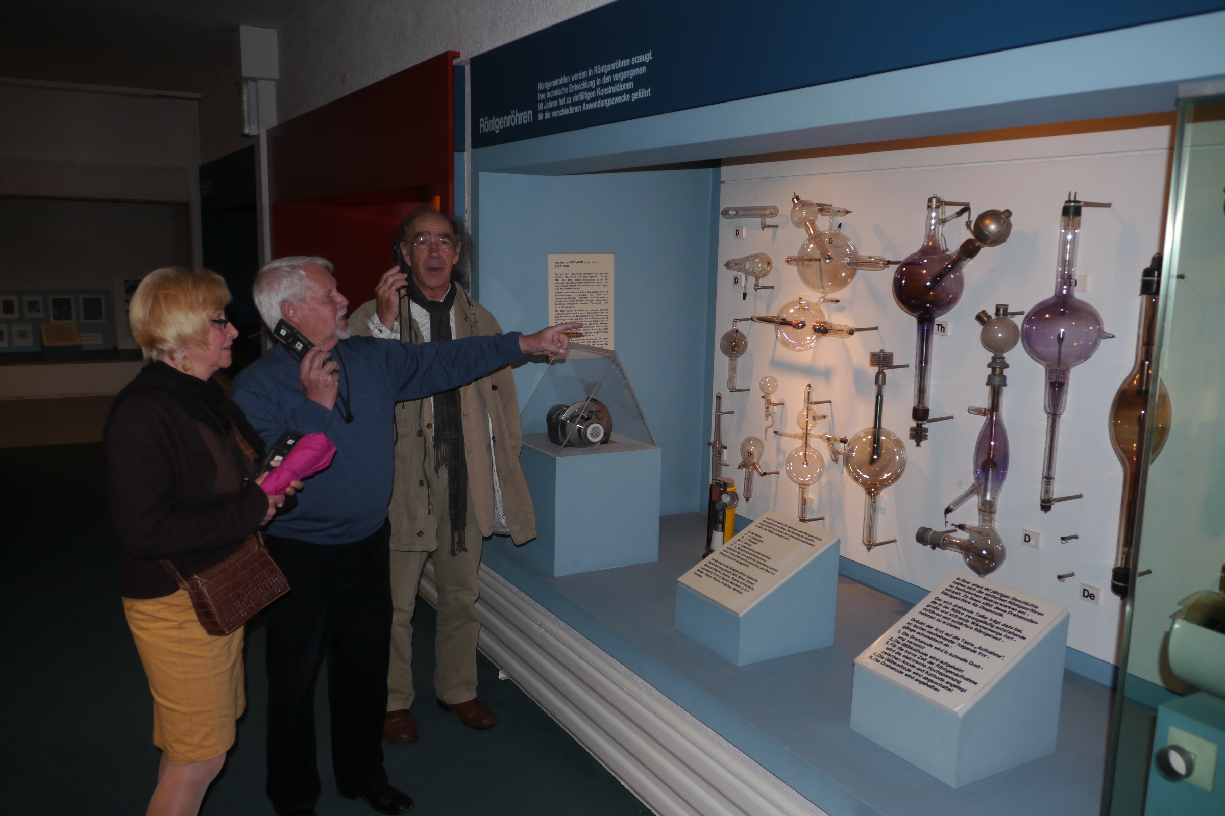 Um dies zu erforschen machten sich am Nachmittag des 17. Oktober einige AH-Stammtischler, z.T. mit Gattinnen auf die Reise nach Remscheid-Lennep. Herbstwetter, Regen und kilometerlange Straßenbaustellen waren kein Hindernis und dank Navi auch kein Problem. Das Museum bot uns ausreichend Parkplätze und so kamen wir pünktlich zur Führung an. Diese fiel wegen Erkrankung der Dame leider aus, so dass wir, ausgestattet mit Audioguides auf eigene Faust zur Erkundung ziehen mussten. So wurden wir denn über Leben und Werk des ersten deutschen Nobelpreisträgers Wilhelm Conrad Röntgen bei einem Rundgang durch die Geschichte der Entdeckung, Erforschung und Anwendung der Röntgenstrahlen informiert. An Hand von Fotos, Displays vielen interaktiven Präsentationen sahen wir viel über den Entdecker der X Strahlen, wie diese auch genannt wurden, über Anwendung von Röntgenstrahlen in der Medizin, Mumienforschung, der Paläontologie, der Kunst und der Werkstoffprüfung. In einem Feldlazarett aus dem 1. Weltkrieg lernte man den Feldarzt und seine Arbeit kennen. Marie Curie berichtet über ihre Idee der mobilen Sankas, den „Petit Curies". In einem Nachbau eines Reihenuntersuchungsbusses konnten wir etwas über die Bekämpfung der Lungentuberkulose erfahren und letztlich wird über die heilende Wirkung der Röntgenstrahlen berichtet. 120 Jahre Röntgen-Medizin u. Hightechentwicklung