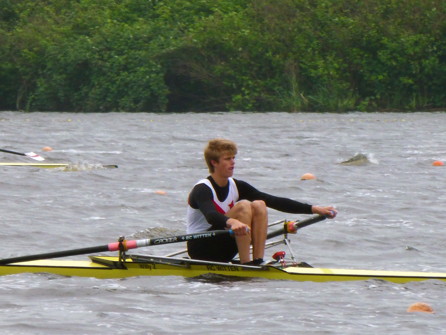 Es waren widrigste Bedingungen in Hamburg, wie sie die Ruderer noch nie erlebt hatten und auch von der Ruhr nicht im Ansatz kennen. Wellen die gegen die Ausleger schlugen und übers Heck und den Bug liefen und die Fußräume langsam mit Wasser füllten, hervorgerufen durch einen Schiebesturm, der die gefahrenen Zeiten enorm schneller machte - obgleich niemand vernünftig rudern konnte. Trotzdem schafften es einige Wittener Junioren mit ihren Leistungen, wie schon Jacob und Benedikt, zu überzeugen.