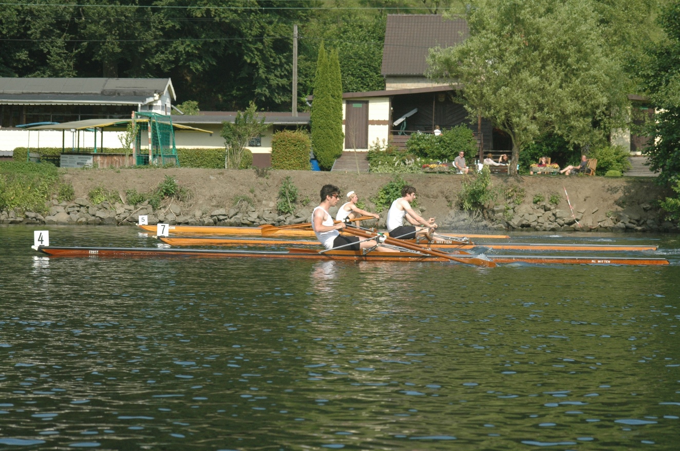 Die Gelegenheit, vor heimischem Publikum zu sprinten, nutze auch der Wittener Bundesliga-Kader. Zunächst ruderte das Team in verschiedenen Zweier- und Viererkombinationen, um dann im abschließenden Achter-Rennen ins Großboot zu steigen. Im „Finale“ der Regatta traten insgesamt vier Achter gegeneinander an. Den Bug vorne hatten am Ende der Erstligist aus Wanne-Eickel und Hamm. Dahinter kam der RCW-Achter vor der Renngemeinschaft Dortmund/Siegburg/Hildesheim und dem zweiten Boot mit Wittener Beteiligung, einer Renngemeinschaft Bochum/Witten/Dorsten/Duisburg/Wetter, ins Ziel.