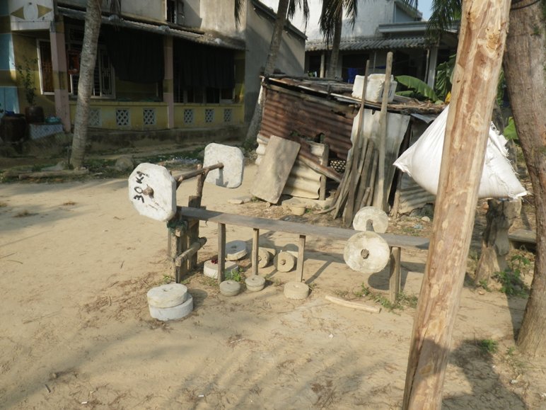 gebunden. Durch eine Kombination von Drehen, Ziehen und Drücken am Spatengriff wird dieses Körbchen dann übers Meer gezogen, eine absolut mühsame und uneffektive Technik. So etwa, als wenn ein Gondoliere in Venedig seine Gondel mit einem abgebrochenen Ruder rückwärts rudert. Jedenfalls mache ich mir bei dem starken Wind hier ziemliche Sorgen um die Fischer… Immerhin fahren sie nicht ständig im Kreis, wie man vorher vermutet hätte!