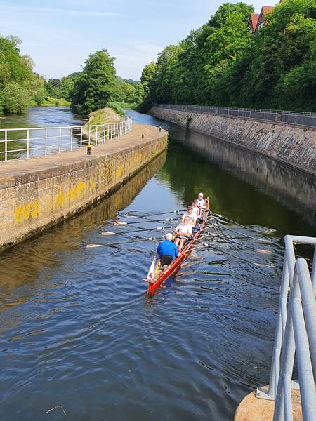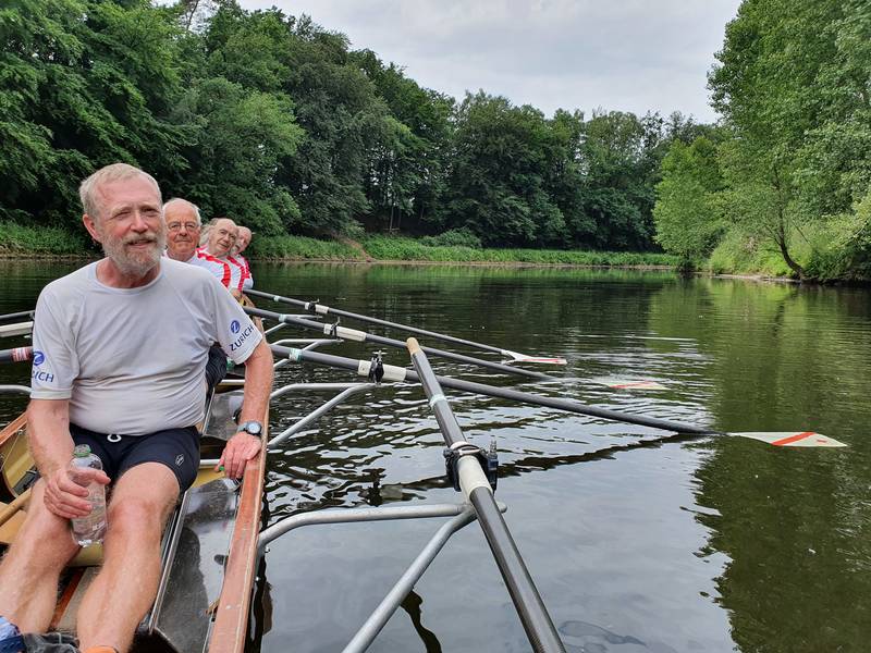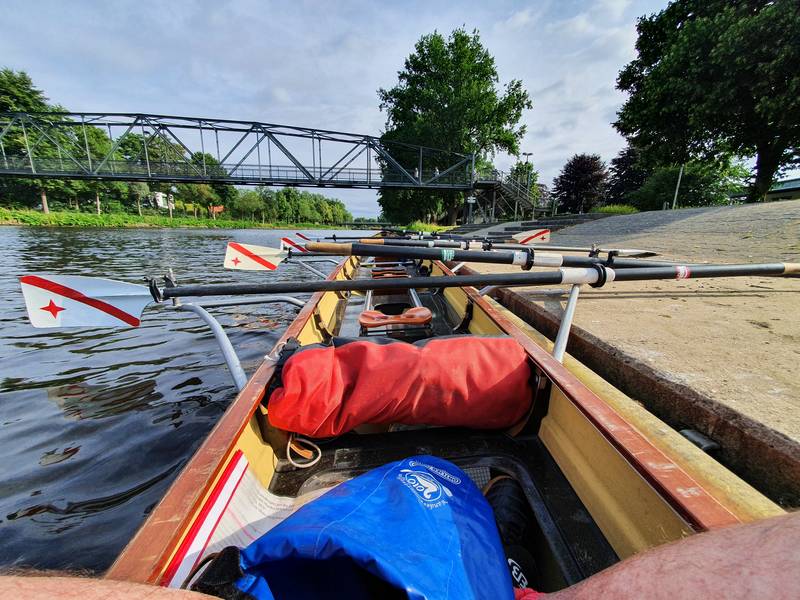 Die Nachricht ereilte uns am Dienstag, noch früh genug, für Fahrtenleiter Dieter Borgmann das Konzept umzustellen. Jetzt neu, ein Vierer mit, „Der Jugend wär das nicht passiert“, kein Pedelec und nur noch sieben Ruderer / Trossleute. Reicht ja für fünf Mann Besatzung und zwei Fahrer. Schau ‘n wir mal.