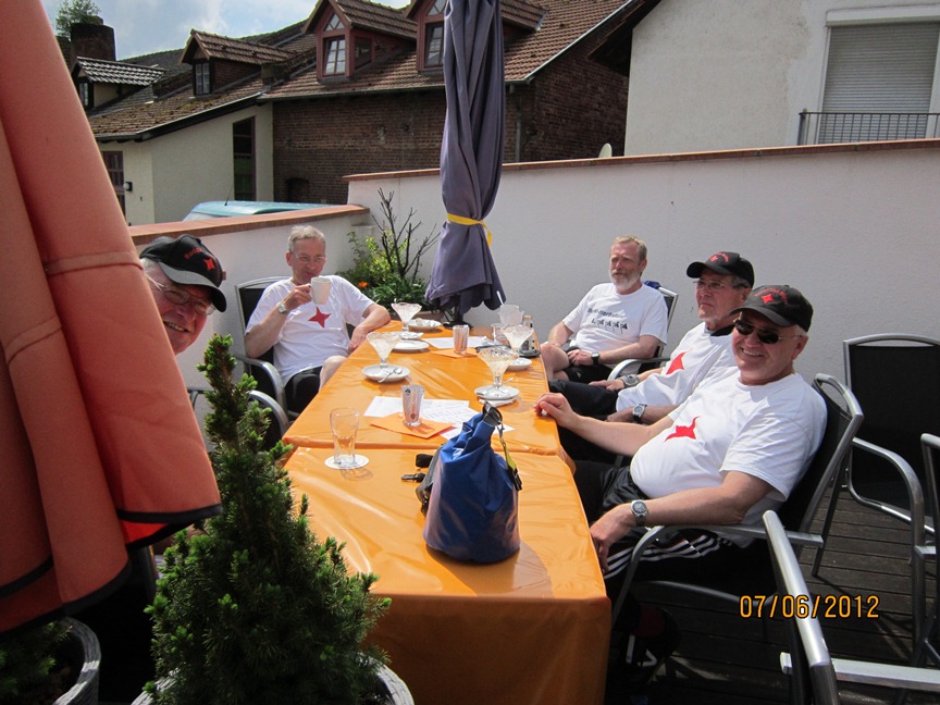 Samstag, Frühstück 8.15 Uhr: Irgendwie hat die Fahrtenleitung herausgefunden, dass ich heute Geburtstag habe. Man, wie doch die Zeit vergeht, schon der zweite Geburtstag nach meiner Freilassung als Thyssenknecht Ende 2010. Eine Kerze, etwas Süßes und viele gutgemeinte Wünsche für Ruder- und Wanderkilometer harrten meiner. Wir werden das, so denke ich, im Laufe des Tages noch mit Rotwein und „Wanderruderers Mandelkuchen“ besiegeln. - Mittagspause, Mahlzeit -