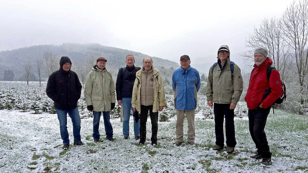 Zwei Wanderführer, je einer für die „Schnellen Füße“ und einer für die „Langsamen Füße“, ein letzter Blick auf die Karte, ein wenig Schneegestöber und los gings. Geplant war Mittagstreff in einer kleinen Pension unterhalb des 593m hohen Steinbrinks.