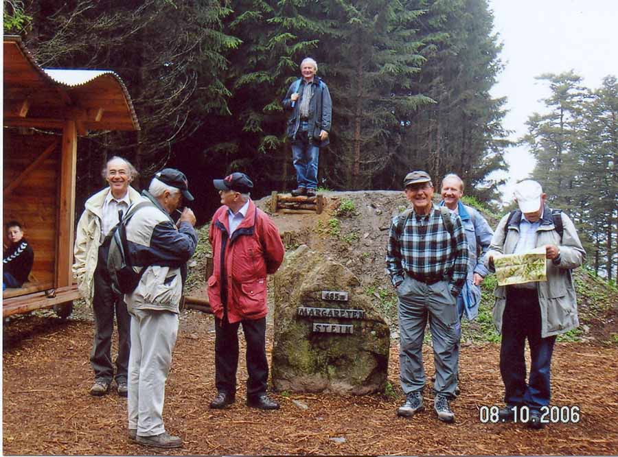 Der Sonntagmorgen sah eine frische, ausgeschlafene Mannschaft zum Spaziergang von ca. 12 km. War die Wanderung am Samstag links herum, so war sie nun am Sonntag rechts herum und ohne größere Höhenunterschiede. Am Margarethenstein war der Punkt zum Wenden erreicht und wir gingen zu unserem Bus zurück. Statt zur nächsten Pizzeria zu fahren wurde die mitgebrachte Verpflegung verzehrt. Na ja, Zeit und Geld gespart. Durch diesen Umstand waren wir natürlich zeitig zu Hause und hatten noch etwas vom Nachmittag.